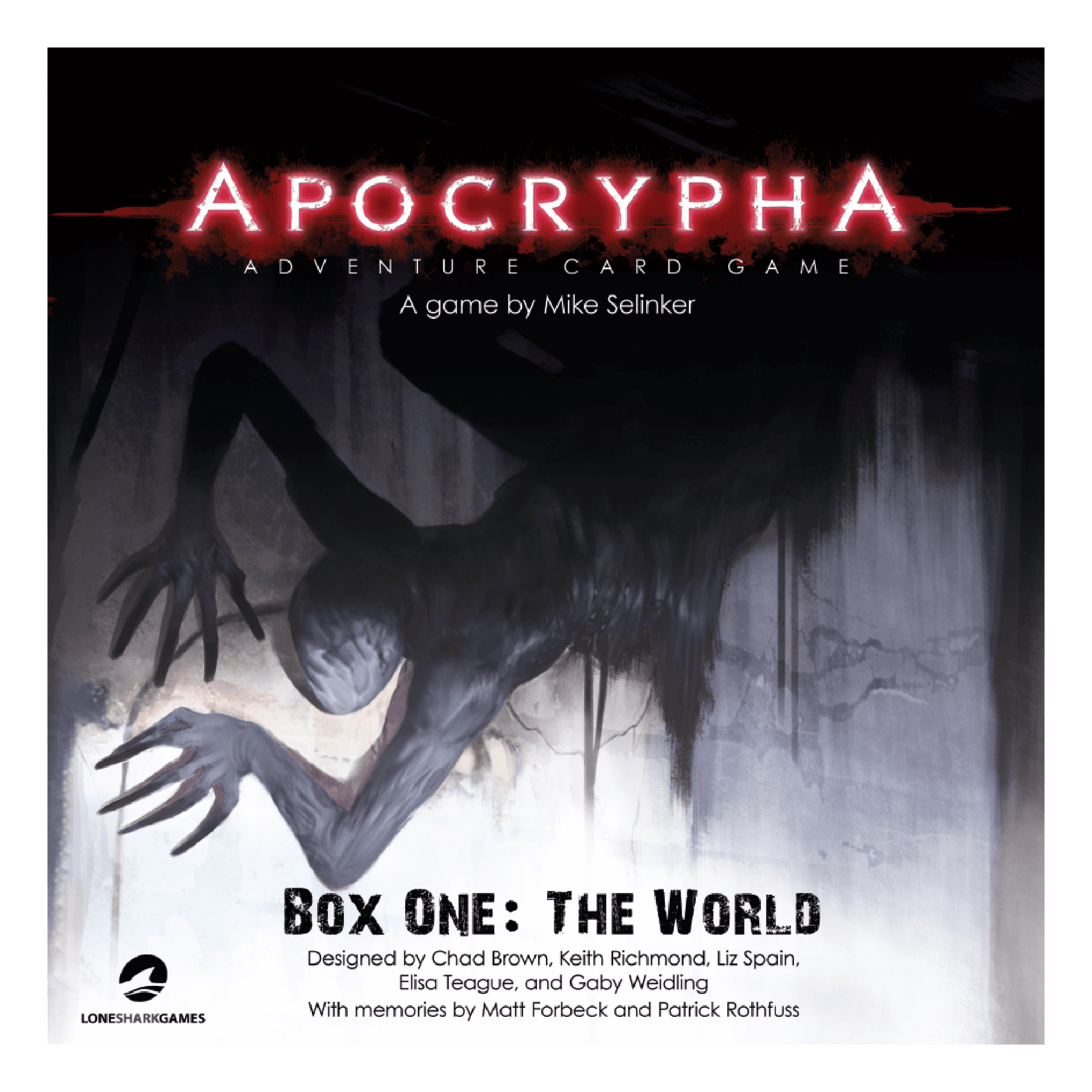 The Apocrypha Adventure Card Game is a world-spanning pre-apocalyptic campaign game, capable of being played as a co-op card game for 1-6 players or a full roleplaying game with one player acting as a guide. The World begins a series of ten chapters, each containing cards that detail memories written by a legendary author. This box contains The Secrets of Candlepoint, with all the base cards you need for any game of Apocrypha, and memories by Patrick Rothfuss. It also contains The Book of the Skinwalkers, a chapter with memories by Matt Forbeck. The expansions The Flesh and The Devil will allow you to play 90 unique missions and reveal the twisted memories of more acclaimed authors.