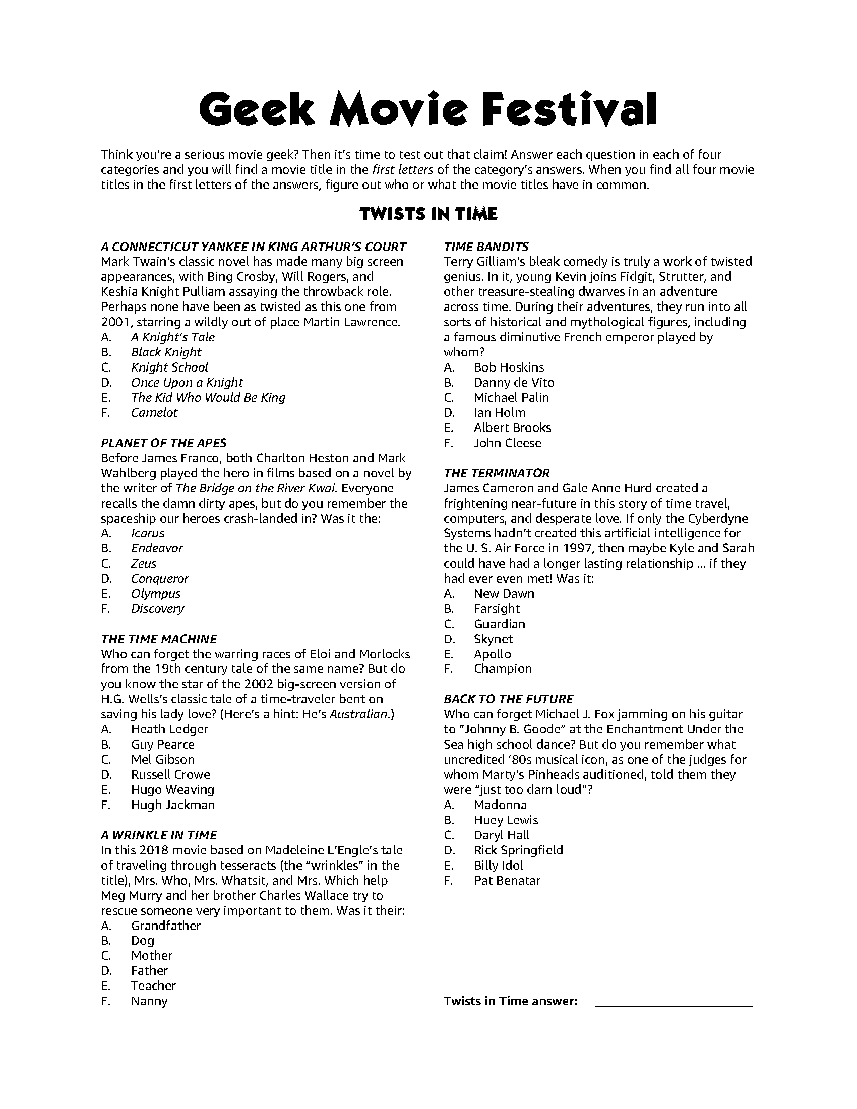 Puzzlepack #5: Geek Trivia is the fifth PDF booklet in Lone Shark’s series of puzzlepacks. This 40-page collection, subtitled Some Nerdity Required, consists of 8 massive trivia quizzes, each with its own metapuzzle. Subjects covered include nerd rock, sci-fi/fantasy/horror films and TV shows, and tabletop and video games. Test your geek cred here!