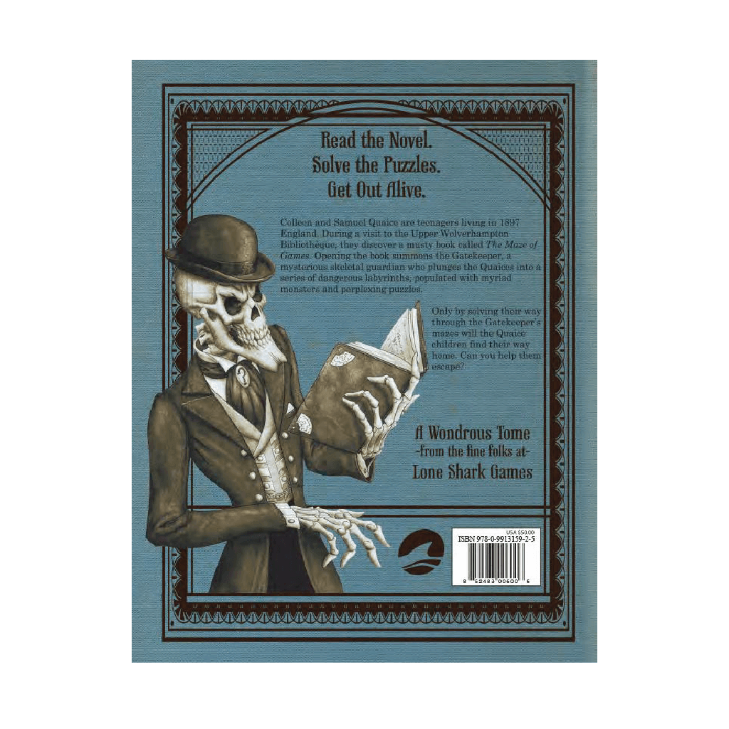 The main characters are teenagers Colleen and Samuel Quaice, two teenagers living in England in the year 1897. During a visit to the Upper Wolverhampton Library, they discover a musty book called The Maze of Games. This summons a mysterious skeletal guardian named the Gatekeeper, who plunges them into a series of dangerous mazes rife with monsters and bizarre puzzles.