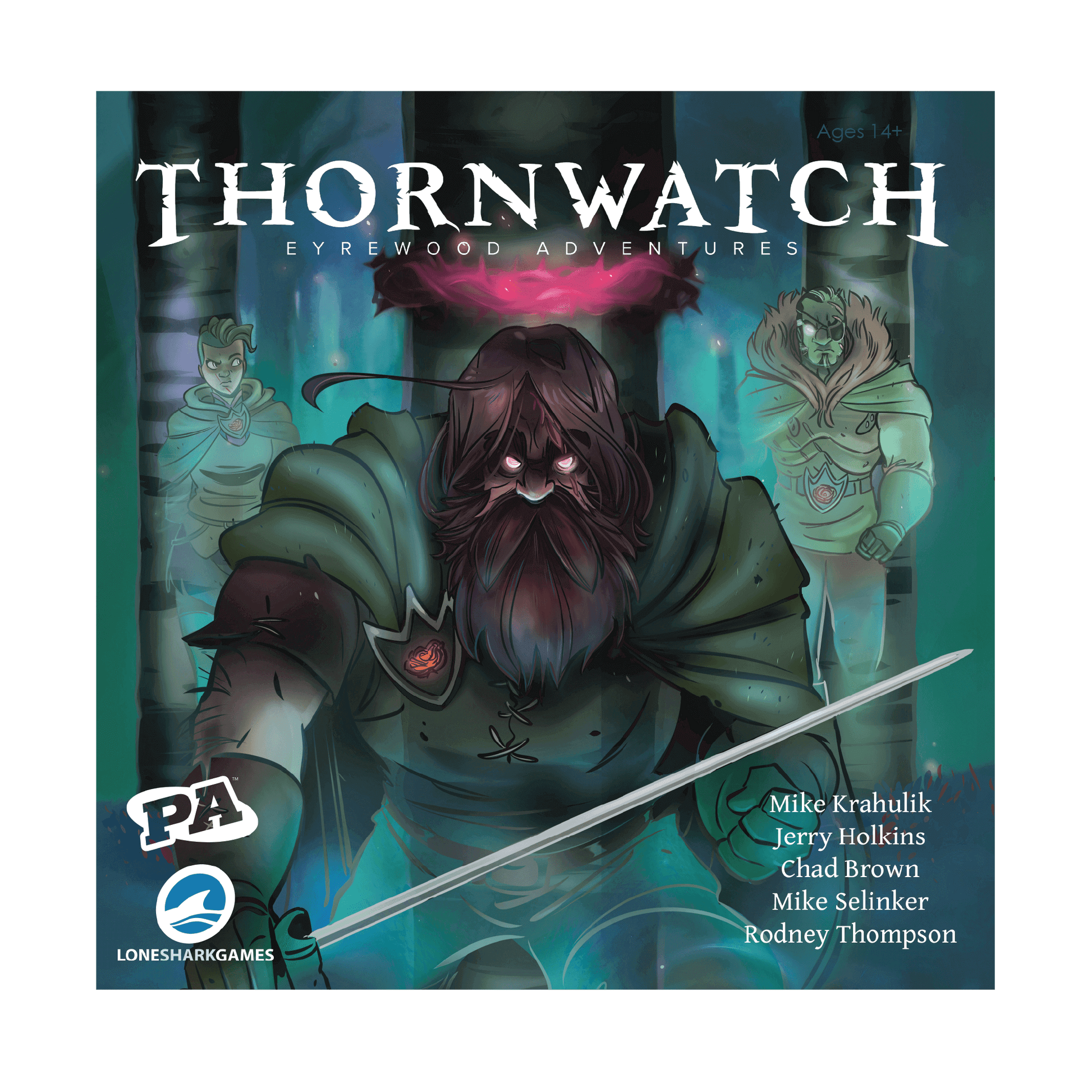 Deep in the Eyrewood, dark creatures would spread their corruption to the people of the forest. Thankfully, the citizens are protected by the Thornwatch, stalwart spirits who come to help when a bramble knot is tied in a birch tree. This graphic novel adventure game gives each player a deck of cards with which to seize the momentum and drive the corruption from the forest. One player takes on the role of the Judge, a powerful guardian spirit that rules over a domain of the Eyrewood.
